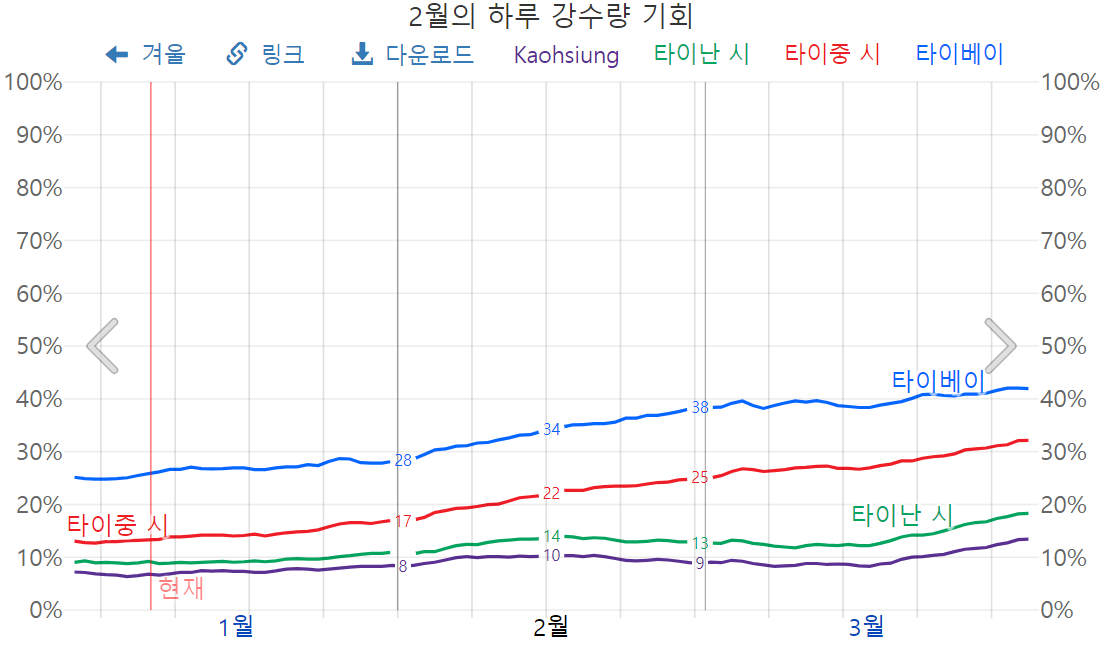 그렇다면 대만의 2월 강수량은 과연 어떠할까요? 아래에서 자세히 확인해 보시기 바랍니다.