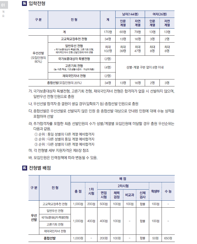 다음으로 입학전형과 전형별 배점입니다. 자세한 내용을 확인해보시기 바랍니다.