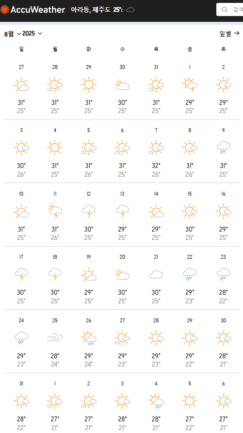 2025년 8월 한라산 기상 정보, 기후 정보, 날씨 정보