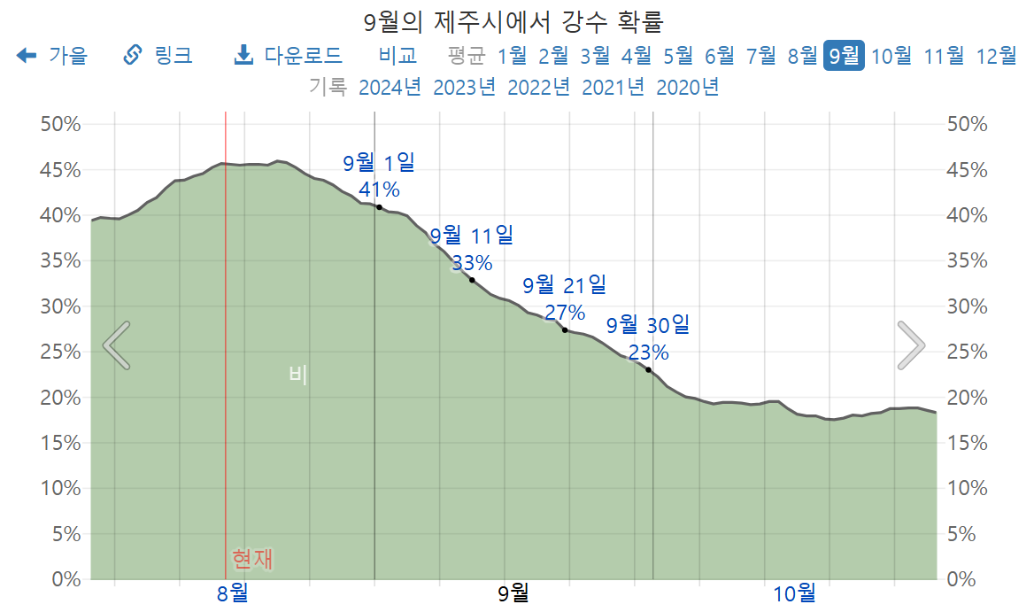2025년 9월 한라산 강수량, 한라산 9월 강수확률