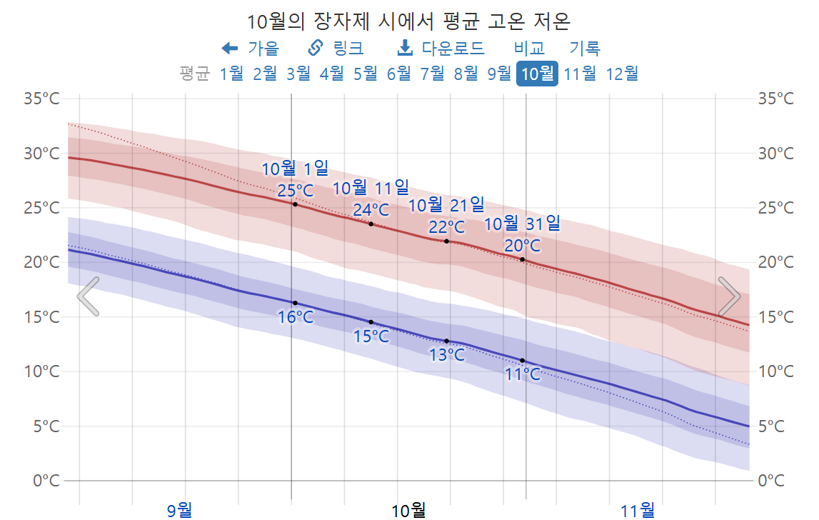 2025년 10월 장가계 기온, 장가계 10월 온도