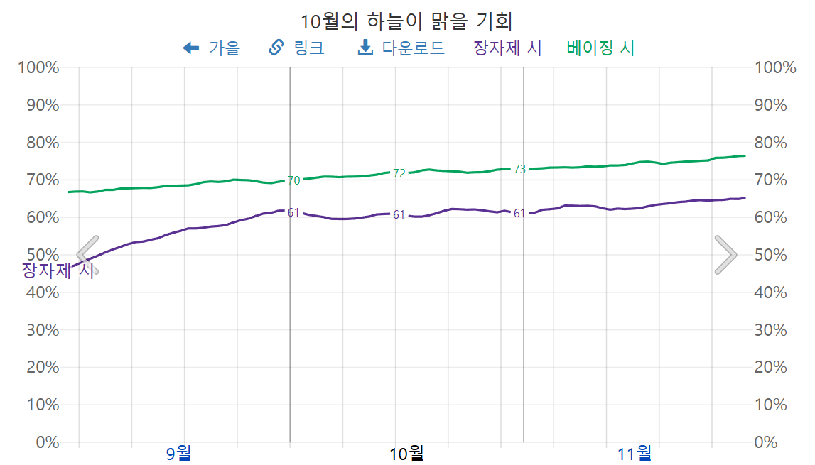 2025년 10월 장가계 맑을 확률, 장가계 10월 맑은 정도