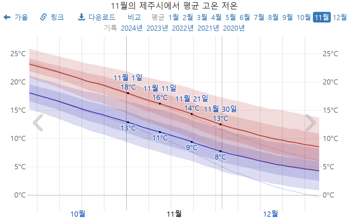 2025년 11월 제주도 기온, 제주도 11월 온도