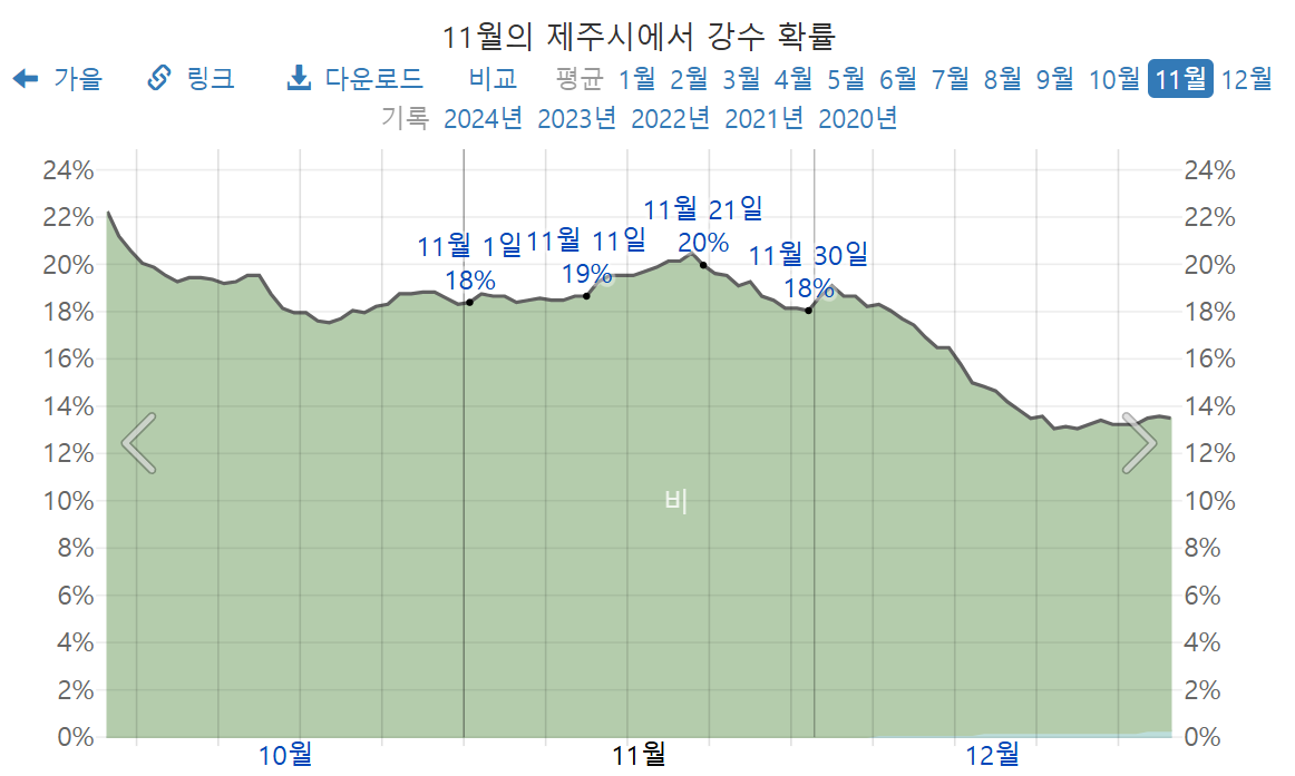 2025년 11월 제주도 강수량, 제주도 11월 강수확률