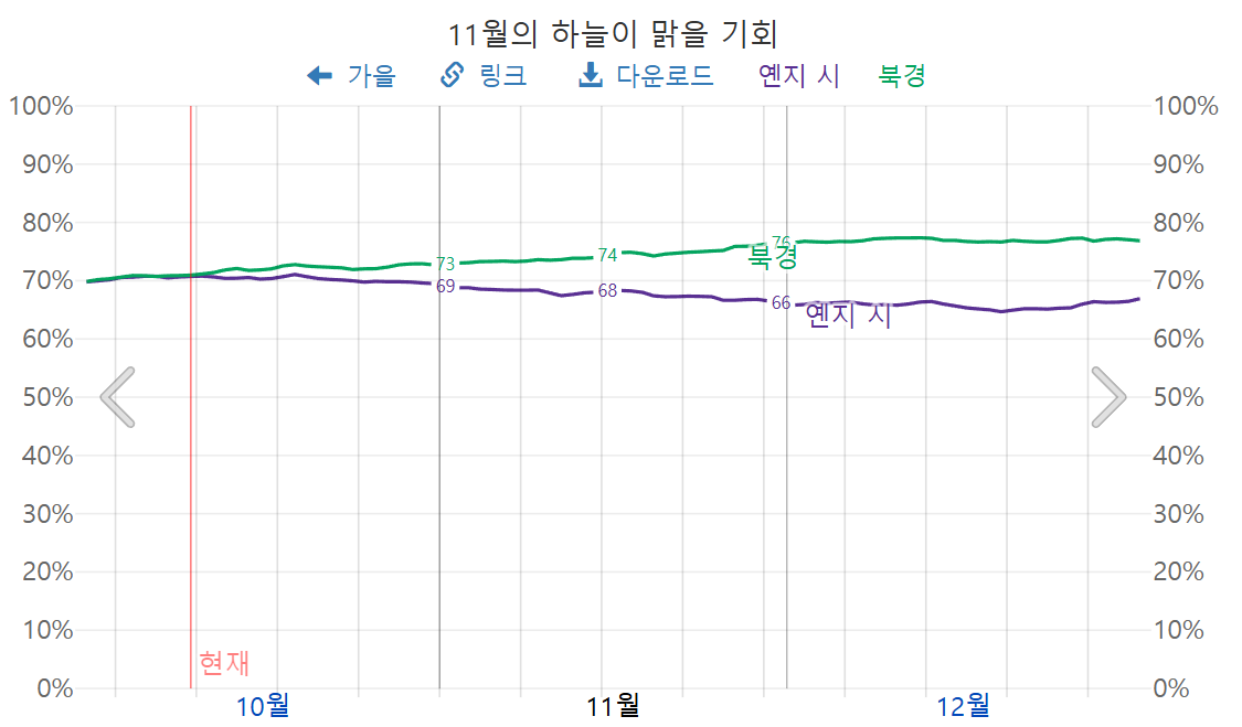 2025년 11월 백두산 맑을 확률, 백두산 11월 맑은 정도