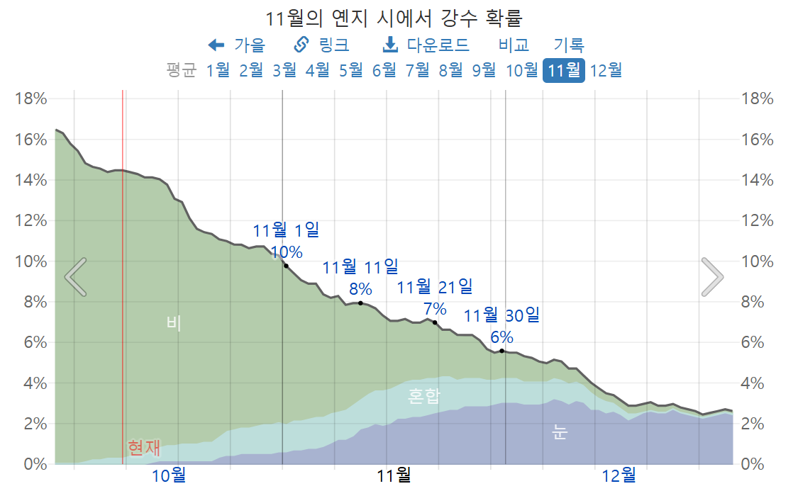 2025년 11월 백두산 강수량, 백두산 11월 강수확률