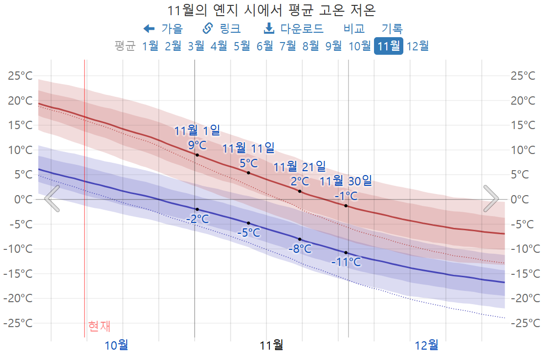 2025년 11월 백두산 기온, 백두산 11월 온도