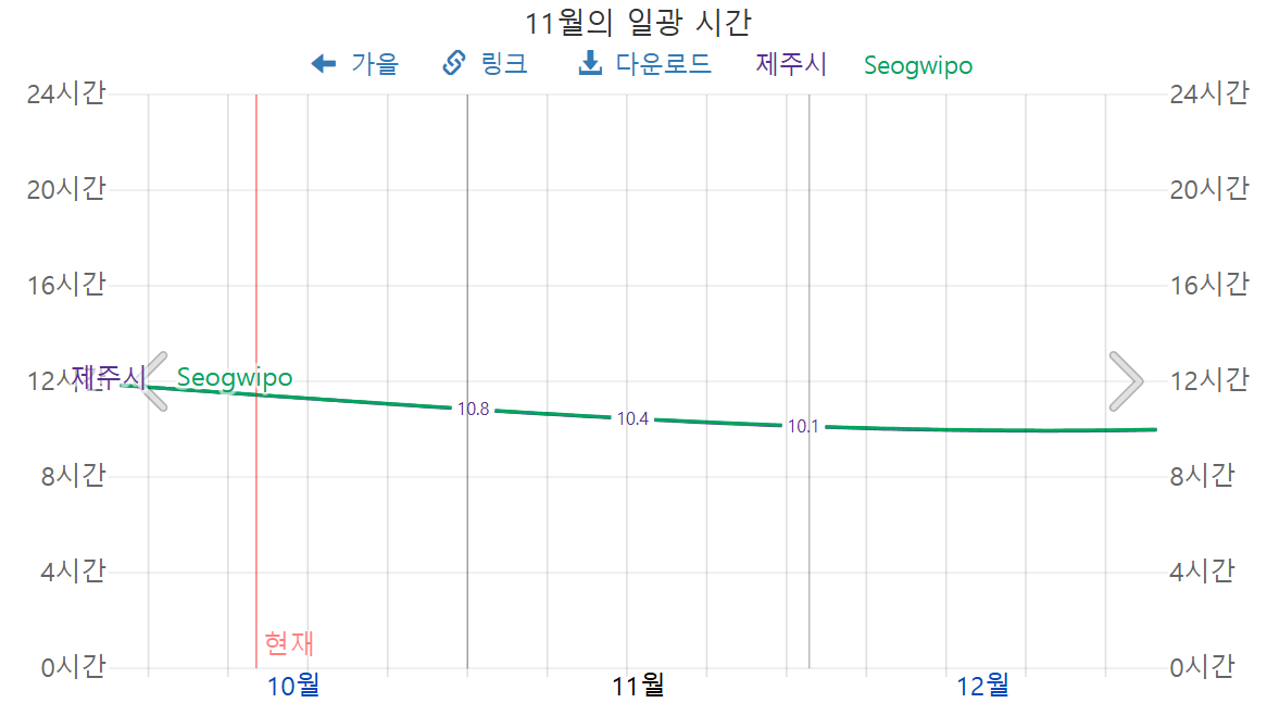 2025년 11월 한라산 일광시간, 한라산 11월 해 떠 있는 시간
