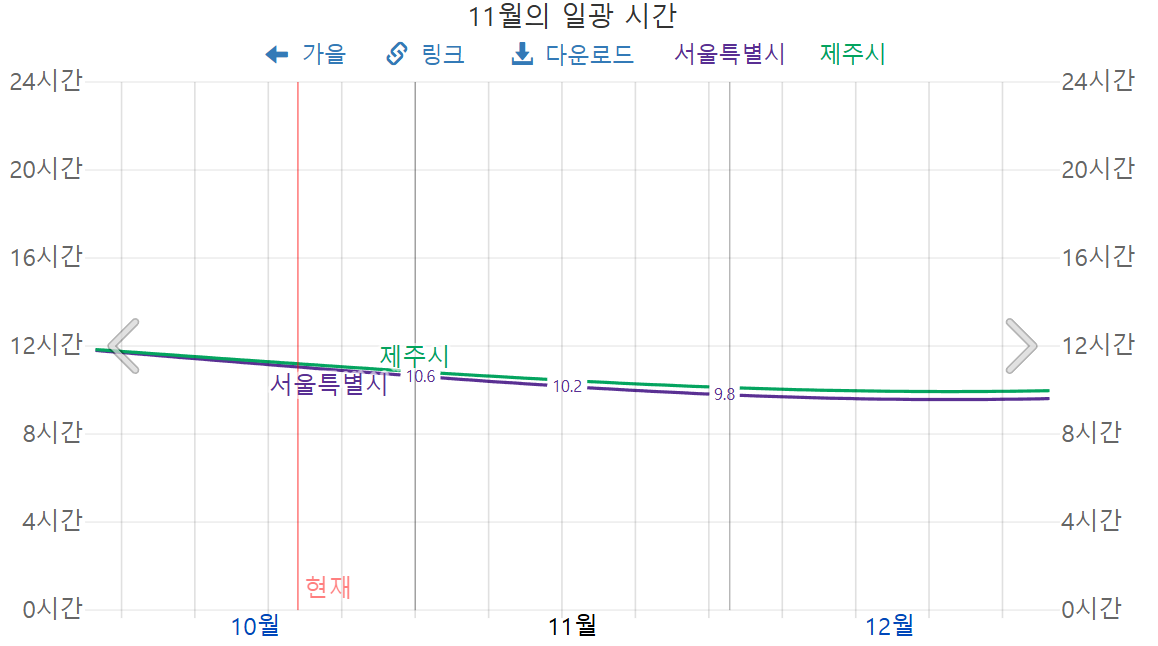 2025년 11월 서울 일광시간, 서울 11월 해 떠 있는 시간
