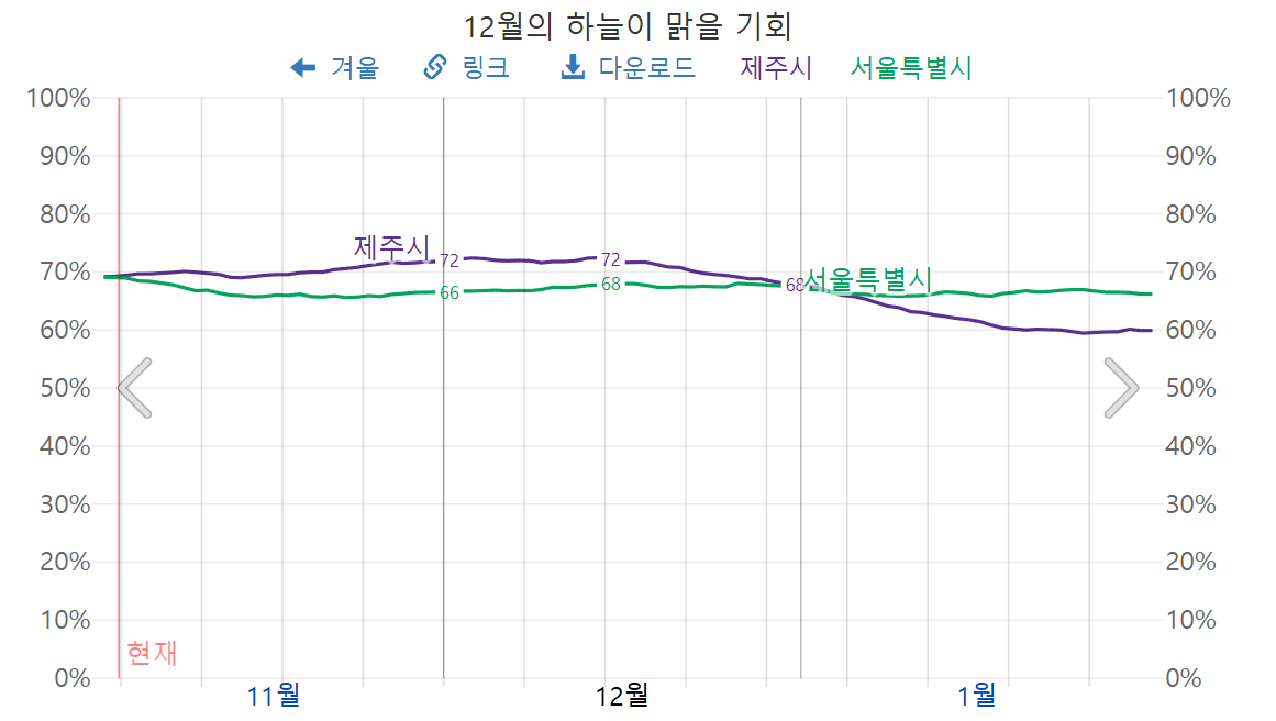 2025년 12월 제주도 맑을 확률, 제주도 12월 맑은 정도