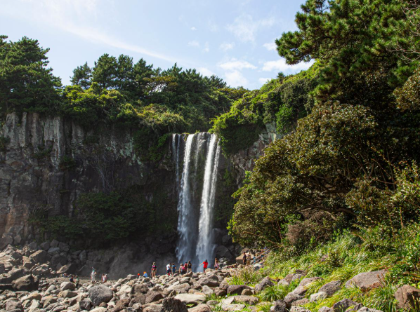 ✓ 정방폭포 : 겨울에도 얼지 않는 폭포로써, 해안으로 떨어지는 모습이 장관입니다.