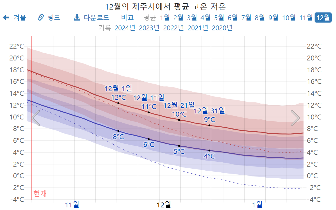 2025년 12월 제주도 기온, 제주도 12월 온도