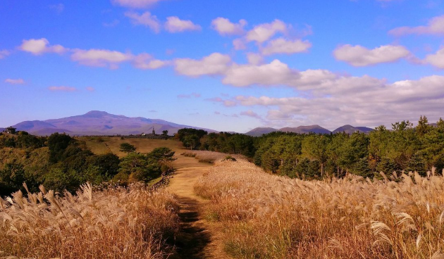 ✓ 산굼부리 : 겨울 억새가 절정인 곳으로, 한라산을 배경으로 사진을 찍을 수 있습니다.