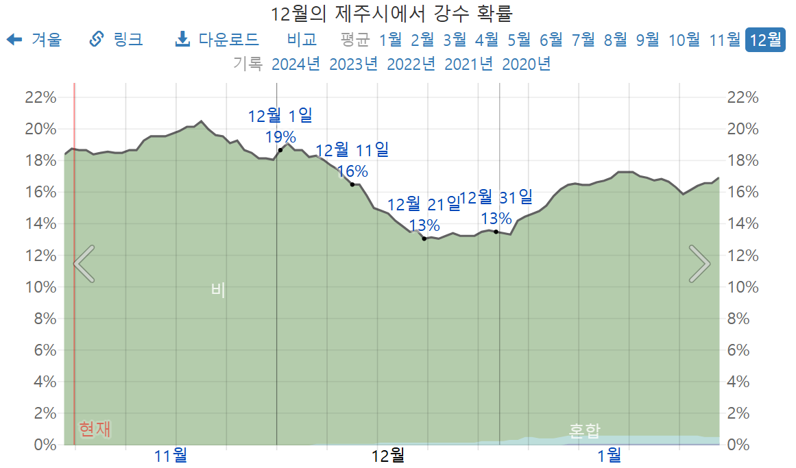2025년 12월 제주도 강수량, 제주도 12월 강수확률
