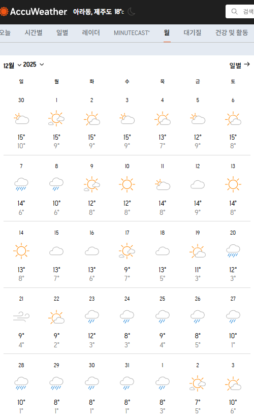 2025년 12월 한라산 일기예보