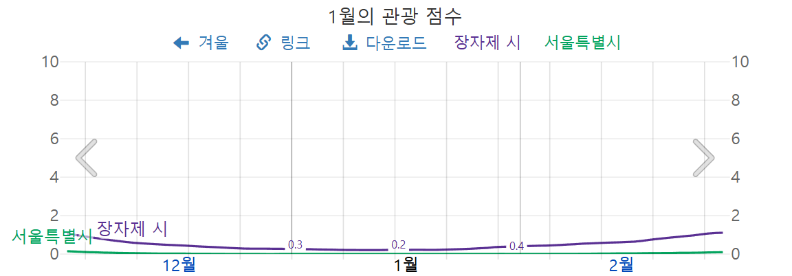 1월 장가계의 관광 점수는, 0점대로써, 여행하기에 좋은 시기는 아닙니다.