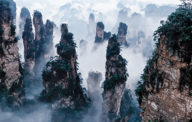 ✓ 원가계 : 아바타의 모티브가 된 장소로써, 하늘로 솟은 기둥바위가 장관을 이룹니다.