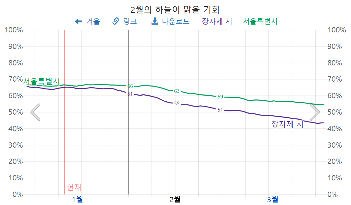 2026년 2월 장가계 맑을 확률, 장가계 2월 맑은 정도