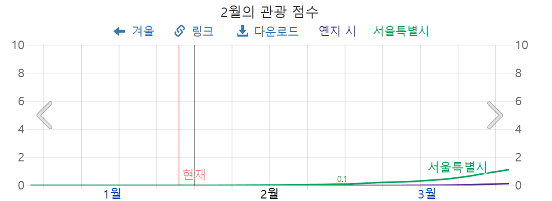 2월 백두산의 관광 점수는 0점대로써, 그리 오르기에는 좋지 않은 시기라고 보입니다.