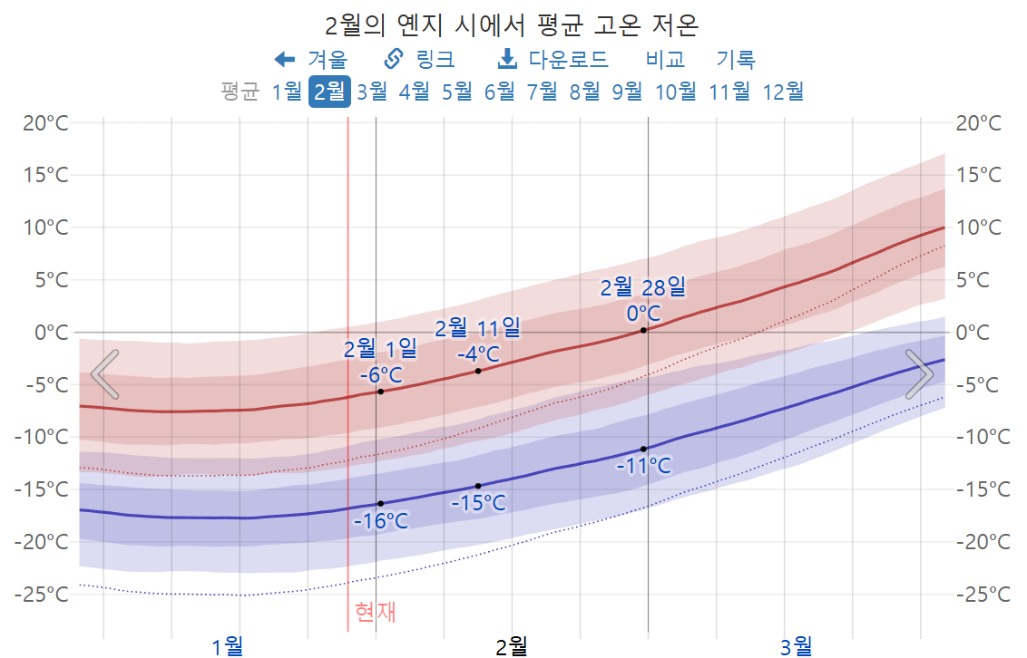 2026년 2월 백두산 기온, 백두산 2월 온도