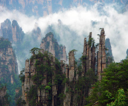 천자산 자연 보호구 : 아바타의 산을 배경으로한 유명 산봉우리가 있는 곳으로써, 케이블카를 통해 영화 같은 절경을 보면서 이동할 수 있습니다.