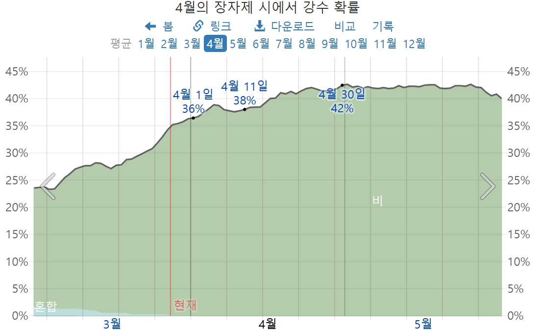 2026년 4월 장가계 강수량, 장가계 4월 강수확률